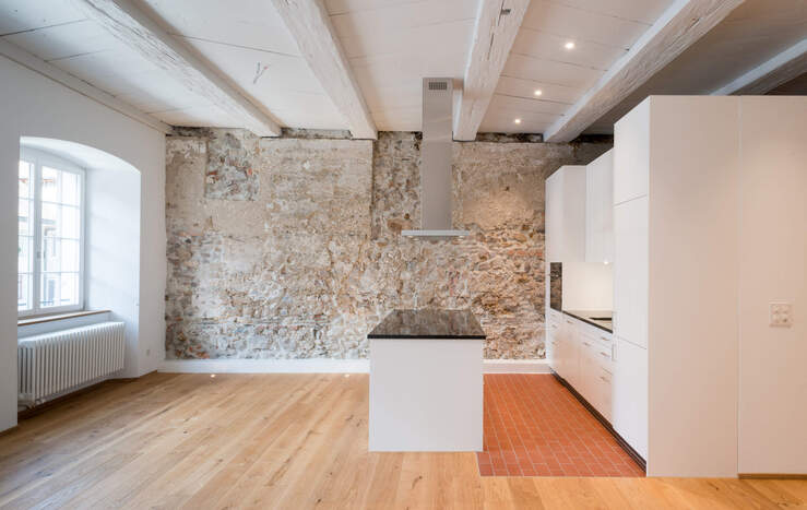 Den drei Häusern werden neun offen gestaltete Wohnungen einbeschrieben mit Nord-Süd-Ausrichtung. Ein neues Treppenhaus erschliesst die Häsuer Stedtli 17 und 19. Der Wohnungsinnenraum wird bei allen Wohnungen in verschiedene, in die Tiefe, gestaffelte Raumbereiche gegliedert. An den Fassadenseiten liegen Wohn- und Essbereiche sowie Arbeitsräume. Die Nasszellen und Schlafmöglichkeiten bleiben im Innenbereich der Wohnung. Die Nasszellen haben dabei die Funktion von raumbildenden Elementen.