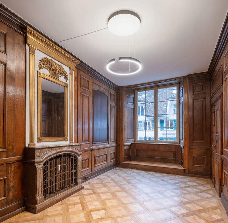 Sowohl das Haupthaus als auch das Hinterhaus stehen unter kantonalem Schutz. Die Eingriffe wurden in enger Zusammenarbeit mit der Denkmalpflege geplant und ausgeführt.