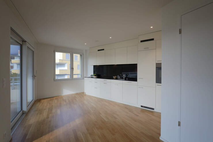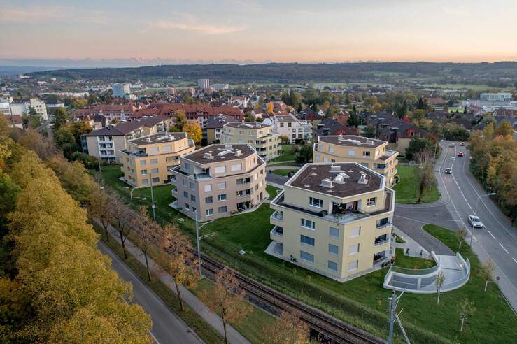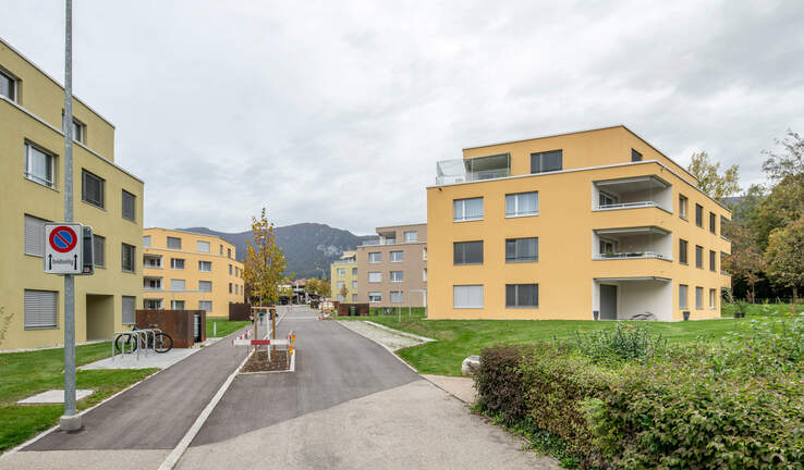 Bezüglich Körnung und Grösse orientieren sich die Neubauten unmittelbar an den bestehenden Ensembles und Gebäuden im Quartier. Die Massstäblichkeit der Wohnbauten wird in der neuen Überbauung fortgesetzt.