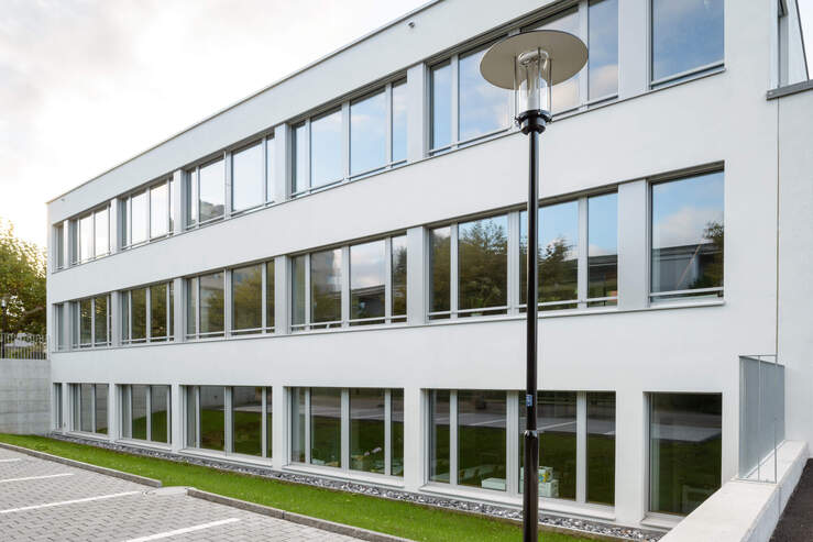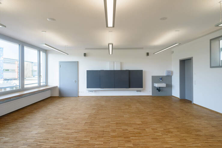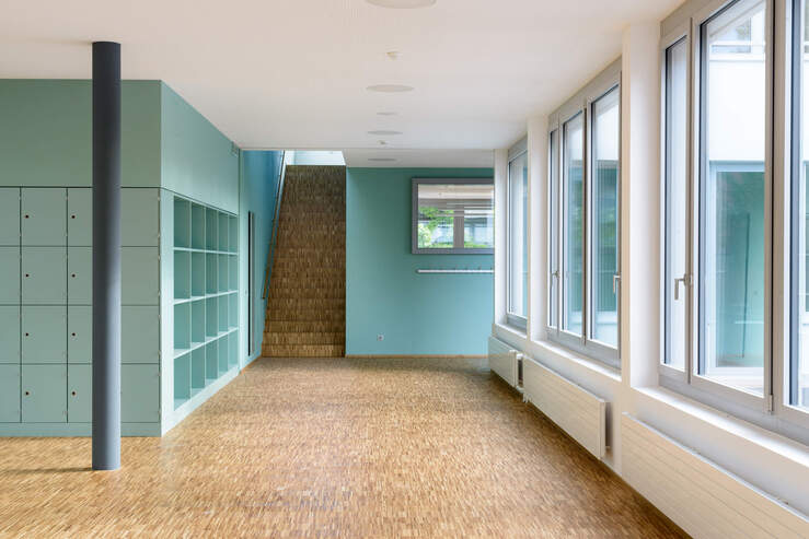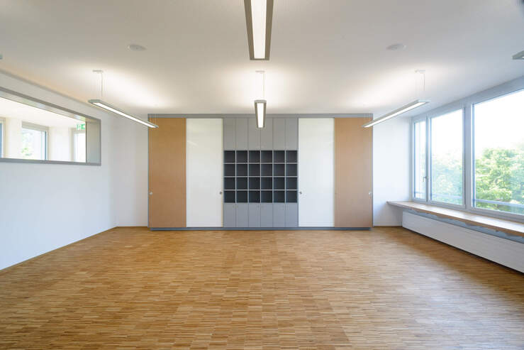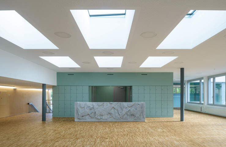 Da die Bezirksschule mehr Unterrichtsräume benötigt, soll die Schulanlage mit einem neuen Erweiterungsbau im Bereich östlich des Traktes A ergänzt werden. Das Gebädue A wird auf der Ostseite L-förmig erweitert und bildet neu zusammen mit dem Gebäude B eine hofähnliche Situation, analog zum bereits bestehenden Pausenhof. Der Neubau wird in Anlehnung an die bestehenden Gebäude ebenfalls ein- bzw. zweigeschossig mit Untergeschoss ausgebildet. Zur Zeughausstrasse hin wird das Untergeschoss analog zum Gebäude A sichtbar, was es ermöglicht, die Räume im UG nordseitig natürlich zu belichten. Die Architektur des Neubaus nimmt die Gestaltung und Materialität der bestehenden, gesamtheitlich in Erscheinung tretende Schulanlage auf.