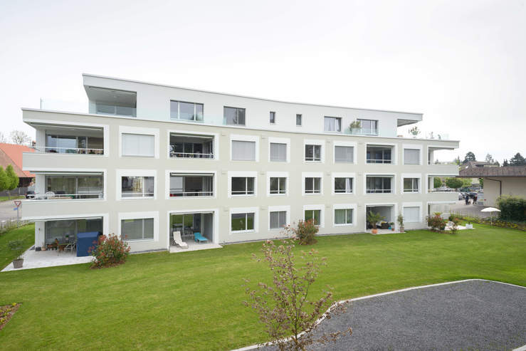 Angesichts der ausgezeichneten Lage am Dorfplatz und der guten Verkehrserschliessung für privaten und öffentlichen Verkehr, wurde das Projekt für ein gemischtes, vielfältiges Publikum entwickelt. Das Wohnungsangebot ist geeignet für Ein- und Zweipersonenhaushalte, Wohnen im Alter, Familien und Wohngemeinschaften. Das Angebot im Erdgeschoss bietet Möglichkeiten für Gewerbe und Dienstleistung in den Bereichen Büro, Praxis und Atelier. Grundrisskonzeption und Wohnungsschlüssel orientieren sich an den Bedürfnissen des Zielpublikums. Es sind pro Geschoss zwei 4.5-Zi- und zwei 3.5-Zi-Wohnungen vorgesehen. Die Wohn-/Essräum der grossen Wohnungen orientieren sich dreisitig sowohl auf Garten- und Platzseite, die der 3.5-Zi-Wohnungen liegen zum Garten hin. Die Loggien erweitern die Wohnräume auf die Gartenseite. Die Grosszügigen Attikawohnungen verfügen über Eck angeordnete Terrassen.